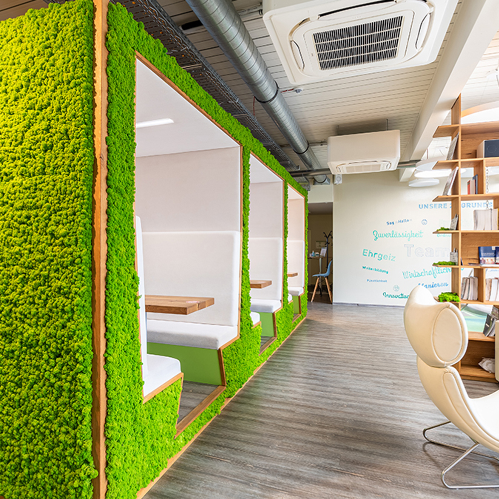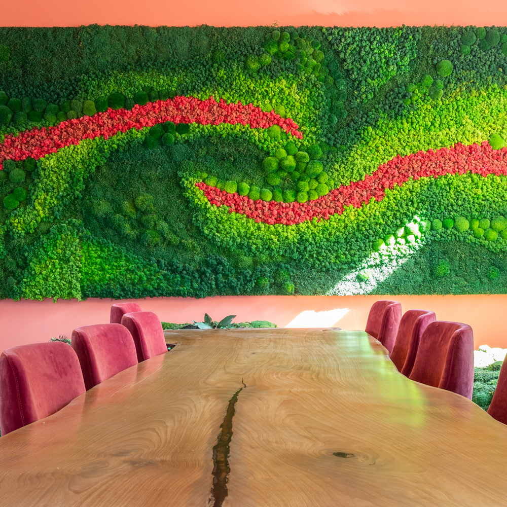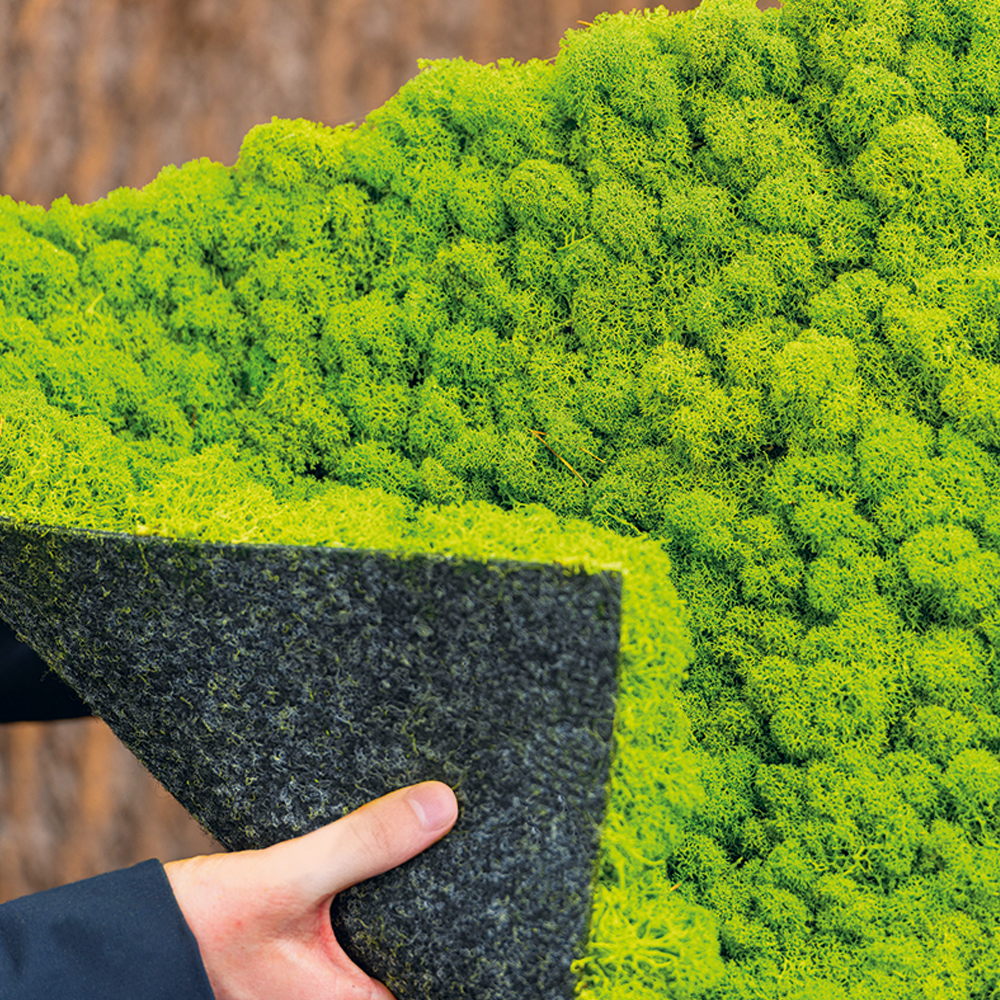 Experience the perfect blend of aesthetics and sustainability with our premium range of natural surfaces, tailored to create an inspiring and captivating environment. Whether it’s creating a unique guest experience or to enhance the well-being of your workspace, our collection offers sustainable materials that leave you and your guests amazed. Imagine the tranquillity of real moss walls, exuding a calming and peaceful ambiance that soothes the senses.