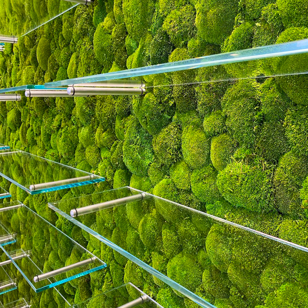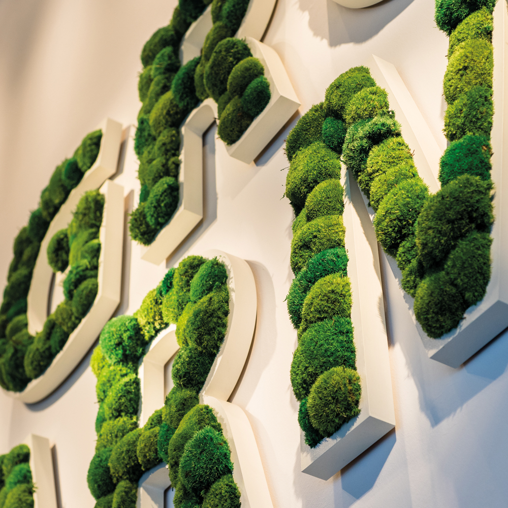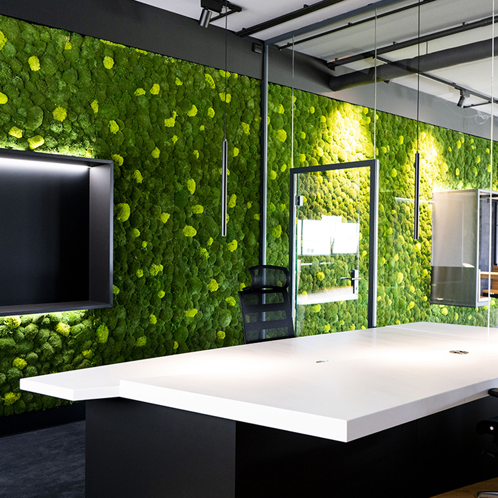 Whatever you’re designing, from wall pictures to complete walls, Greenhill Moss Premium always gives you a green work of art. The green cushion moss is great for unusual wall, ceiling and object design. With their sound-absorbent properties, the moss pictures make a significant contribution towards well-being at home and in the workplace. On request, we can also custom produce designs with Greenhill Moss Premium, using arched mounts, for example, to produce stunning 3D.