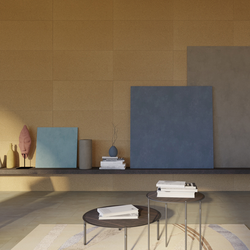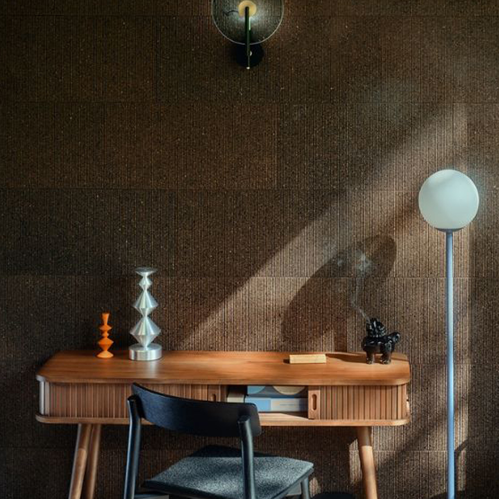 Solid agglomerated cork tiles to be used as wallcoverings within buildings, contributing significantly to the acoustic and thermal performance of buildings, improving environmental comfort and reducing energy costs. Tiles are texturedby pressure moulding and finished with a waterbased protector for increased water and stain resistance.