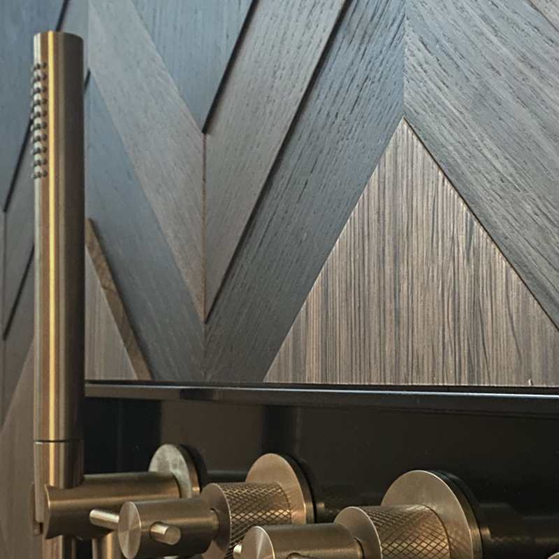 Dark and broody best describes this bog oak beauty. But do not be fooled, there’s nothing sullen about this layered panel. The variations in colour and layers add depth and playfulness. True framed Art Deco and a child of its time. A monochromatic palette of deep browns and blacks.