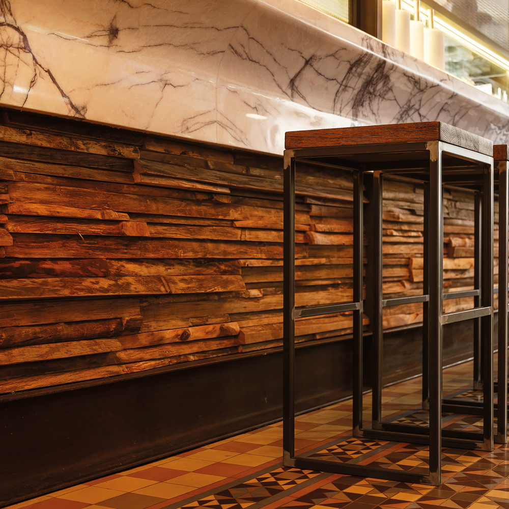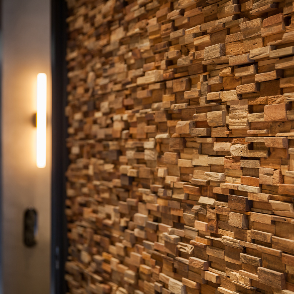 This collection features handcrafted wall panels made from assorted reclaimed hardwoods sourced from salvaged building materials in India and Indonesia. Each design highlights natural texture, weathering, and unique character. The collection reflects a strong commitment to sustainability and artisanal craftsmanship.