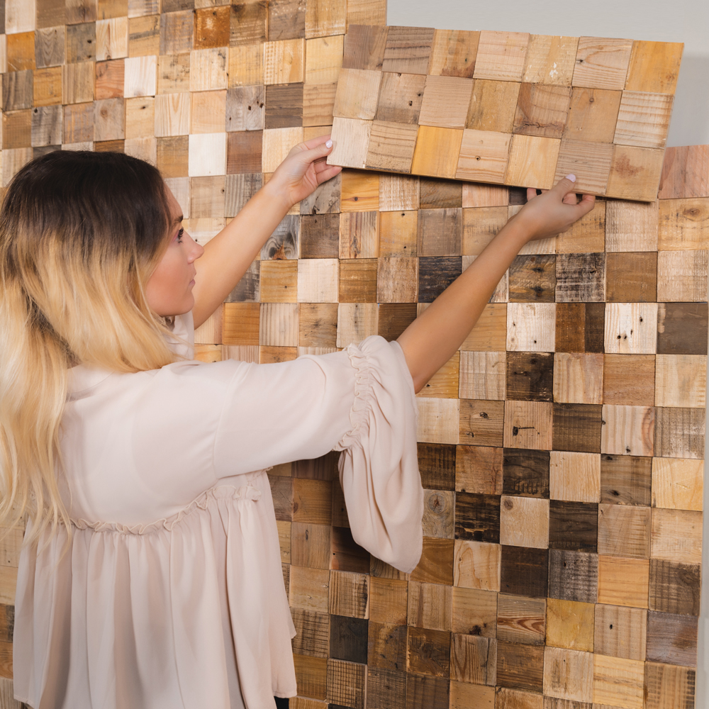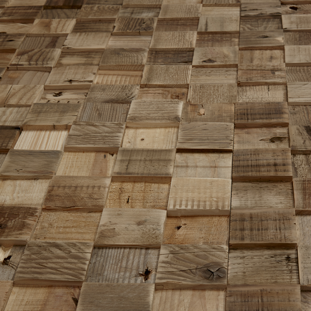 Wow Walls Reclaimed wood walls is a true ode to nature. The panels are finished in a rustic style, it’s a mix of pine, spruce and fir wood and it has a light brushing texture. It really adds a WOW to any room and turns the space into a talking point.