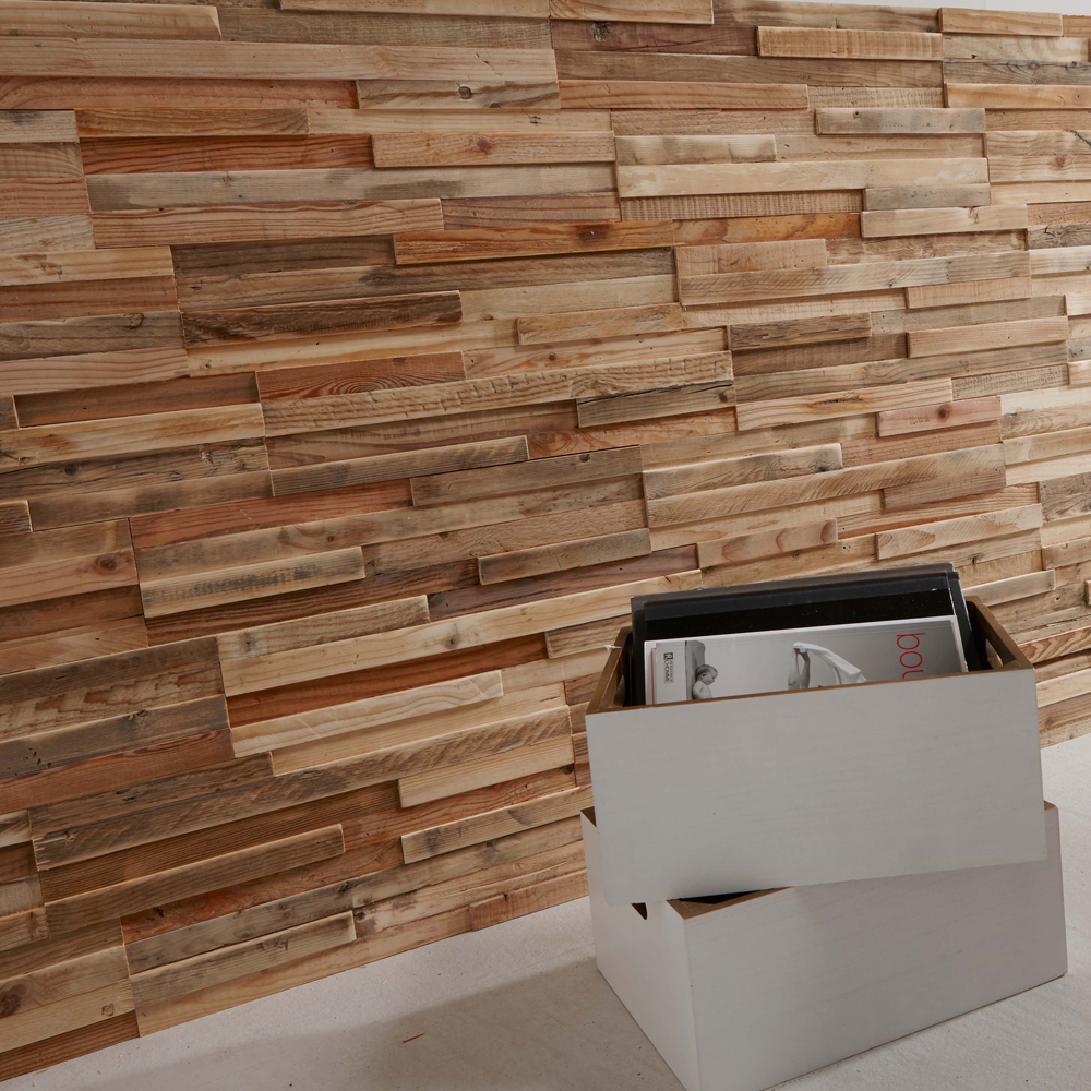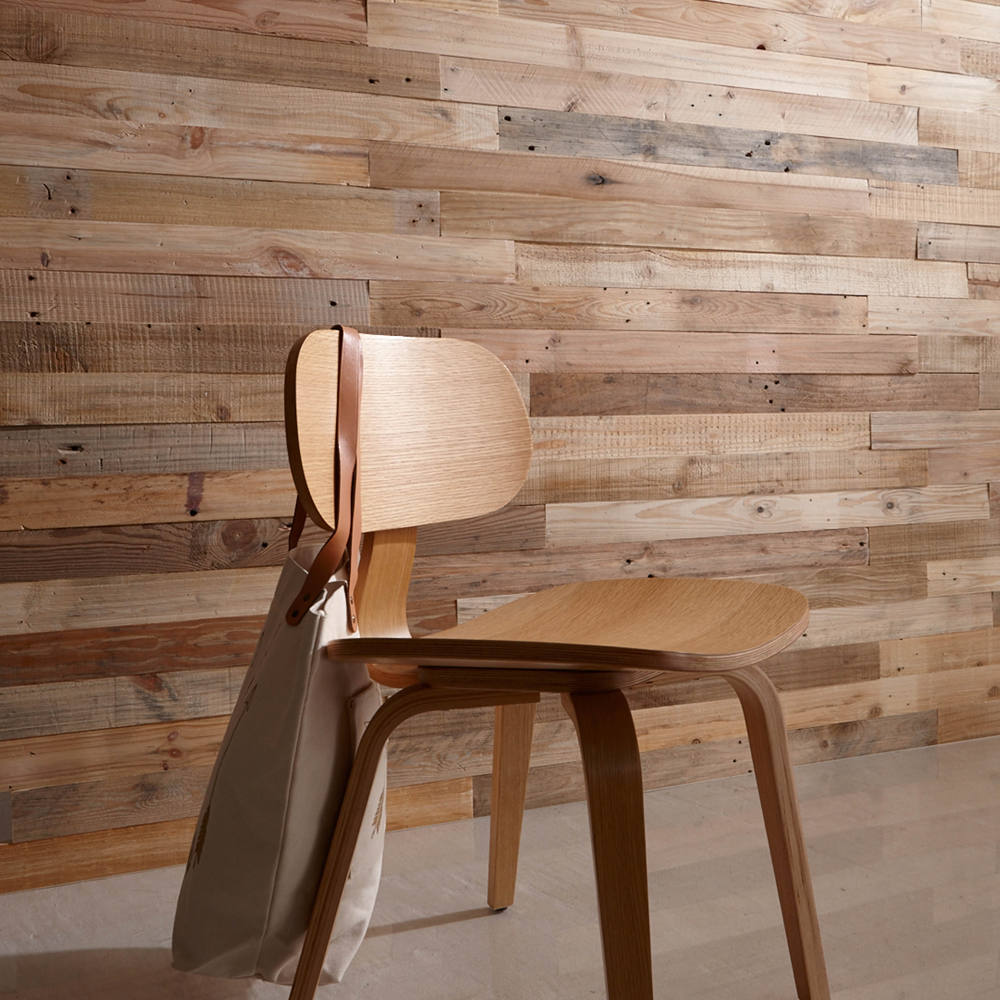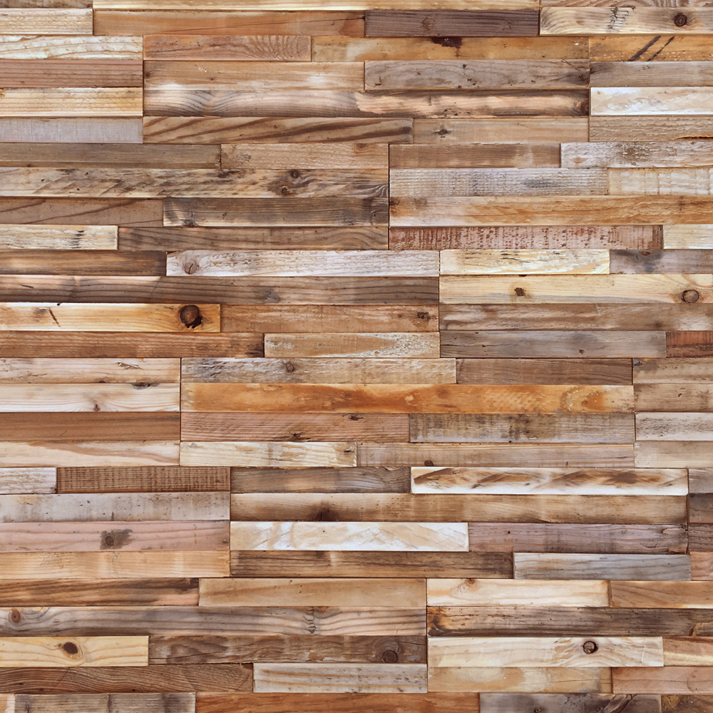 Panels are lightweight and are preassembled for a quick and easy installation. A unique assembly of salvaged woods with colours inspired by nature which brings a warmth and a wow to any interior.